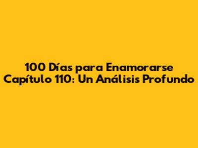 100 Días Para Enamorarse Capítulo 110: Un Análisis Detallado