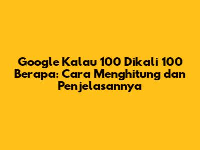 Pernahkah kamu bertanya-tanya, "Google, kalau 100 dikali 100 berapa?" Pertanyaan sederhana ini sering muncul di benak banyak orang, baik karena penasaran, sedang belajar matematika dasar, atau bahkan hanya iseng saja. Nah, di artikel ini, kita akan membahas jawaban dari pertanyaan tersebut dan memberikan penjelasan lengkap tentang cara menghitungnya. Yuk, simak!
