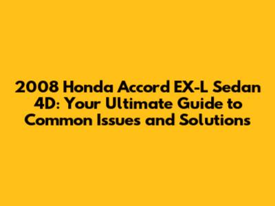 Owning a 2008 Honda Accord EX-L Sedan 4D can be a rewarding experience. These cars are known for their reliability, but knowing the common issues and how to address them is essential for keeping your Accord in top condition. This guide has covered engine and powertrain problems, electrical system woes, suspension and steering issues, and interior and exterior problems. By staying proactive with maintenance and addressing any issues promptly, you can keep your Accord running smoothly for years to come. Remember to always consult with a qualified mechanic for any complex repairs. Happy driving, and enjoy your Accord!