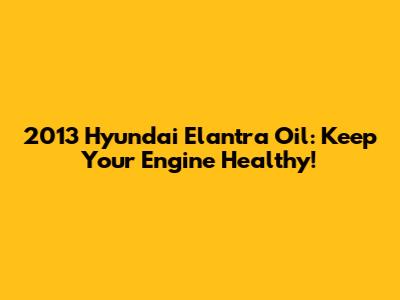 2013 Hyundai Elantra Oil: Keep Your Engine Healthy!