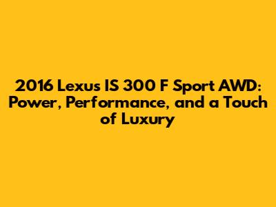 Hey guys, let's dive into the 2016 Lexus IS 300 F Sport AWD! This car is a fantastic blend of sporty performance, all-weather capability, and the luxury you'd expect from the Lexus brand. We're going to break down everything from the horsepower figures to the driving experience, so you can get a good feel for what makes this car so special. If you're looking for a compact luxury sedan that's fun to drive year-round, the IS 300 F Sport AWD is definitely worth a look. We'll explore its engine specs, performance characteristics, interior features, and how it stacks up against the competition. Buckle up, because we're about to take a deep dive into this impressive machine!