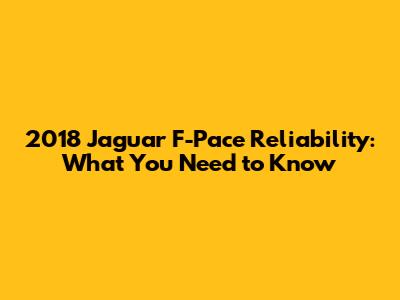 2018 Jaguar F-Pace: Reliability Guide