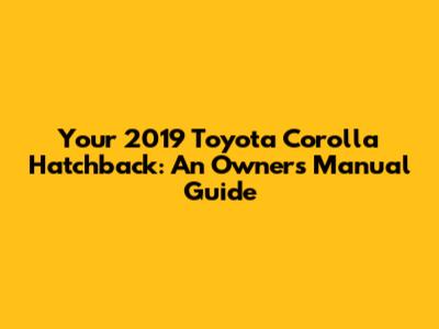 2019 Toyota Corolla Hatchback: Owner's Manual Guide