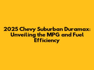 The 2025 Chevy Suburban Duramax MPG is just one example of how automakers are working to improve fuel efficiency in large SUVs. As technology advances and consumer demand for more eco-friendly vehicles grows, we can expect to see even more innovations in the coming years. Hybrid and electric powertrains are becoming increasingly common in the SUV segment, offering the potential for even greater fuel savings. Lightweight materials, such as aluminum and carbon fiber, are also being used to reduce vehicle weight and improve fuel economy. Aerodynamic improvements, such as streamlined designs and active grille shutters, are also contributing to better MPG. The future of fuel efficiency in large SUVs is bright, and the 2025 Suburban Duramax is leading the way. As manufacturers continue to push the boundaries of innovation, we can look forward to a future where large SUVs are both practical and environmentally friendly. The combination of advanced engine technology, lightweight materials, and aerodynamic designs will pave the way for even more fuel-efficient SUVs in the years to come. The 2025 Suburban Duramax is a testament to the progress that has already been made, and it serves as a glimpse into the exciting possibilities that lie ahead. As consumers become more environmentally conscious, the demand for fuel-efficient SUVs will continue to grow, driving further innovation and pushing automakers to develop even more sustainable vehicles. The future of large SUVs is not just about size and capability; it's also about efficiency and responsibility. The 2025 Suburban Duramax is a step in the right direction, and it sets the stage for a new era of fuel-efficient SUVs that are both practical and environmentally friendly.