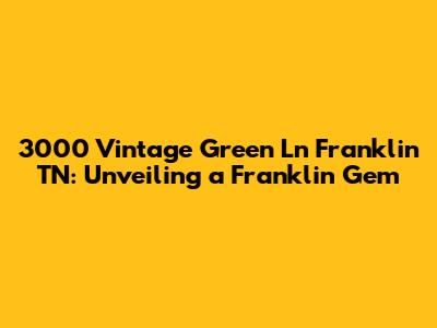 Hey everyone! Today, we're diving deep into a real estate treasure in the heart of Franklin, Tennessee: 3000 Vintage Green Ln. This isn't just a house; it's a home with a story, a place where memories are made, and a fantastic investment opportunity. If you're searching for your dream home or a smart real estate move, keep reading. We'll explore everything about 3000 Vintage Green Ln Franklin TN, from its stunning features and prime location to why it's a standout choice in the vibrant Franklin market. Buckle up, because we're about to embark on a virtual tour that will have you dreaming of moving day!