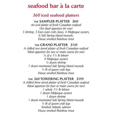 The 360 Restaurant menu is a testament to Canadian cuisine , showcasing fresh, local ingredients prepared with creativity and flair. The menu changes seasonally to reflect the best of what’s available, ensuring that you’re always treated to the freshest and most flavorful dishes. You can expect a range of options, from succulent seafood to tender meats and vibrant vegetarian creations. Each dish is carefully crafted to tantalize your taste buds and complement the stunning views.