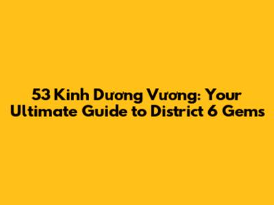 Hey there, fellow explorers! Ready to dive into the vibrant heart of District 6, specifically at 53 Kinh Duong Vuong? Buckle up, because we're about to embark on a journey filled with hidden gems, local favorites, and everything you need to know about this bustling address. Whether you're a seasoned local, a curious newcomer, or just looking for some insider tips, this guide is your key to unlocking the best of what 53 Kinh Duong Vuong has to offer. We'll explore everything from the best places to grab a delicious bite to the most convenient spots for your daily errands. So, grab a coffee (or a refreshing tra da!), settle in, and let's get started!