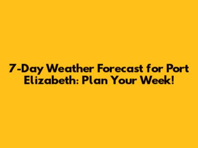 7-Day Weather Forecast For Port Elizabeth: Plan Your Week!