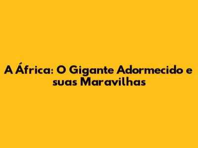 A África: O Gigante Adormecido E Suas Maravilhas