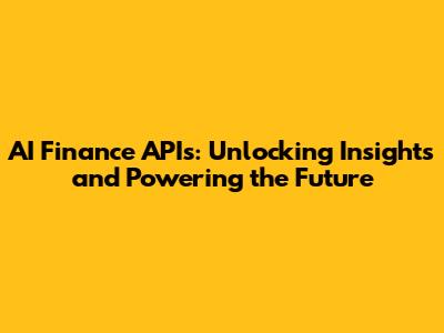 AI Finance APIs: Unlocking Insights And Powering The Future