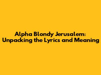 Hey guys! Today, we're diving deep into a song that's more than just a catchy tune – it's a powerful message of peace and unity. We're talking about Alpha Blondy's iconic track, 'Jerusalem'. If you've ever wondered what those powerful lyrics are all about, or why this song resonates so deeply with so many people across the globe, you're in the right place. We're going to break down the lyrics, explore the historical and spiritual context, and really get to the heart of what Alpha Blondy is trying to convey. This isn't just about a song; it's about a vision for a better world, a world where people can come together regardless of their differences. So, grab your headphones, maybe a cup of your favorite drink, and let's get into it. We'll explore the powerful imagery, the calls for peace, and the universal themes that make 'Jerusalem' a timeless anthem. Get ready to be inspired, guys, because this song has a lot to say!