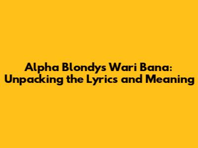 Hey music lovers! Today, we're diving deep into the soulful world of Alpha Blondy, a true reggae legend. We're going to unpack the lyrics of one of his iconic tracks, "Wari Bana." Now, if you've ever vibed to Alpha Blondy, you know he's not just about catchy beats; he's about powerful messages. "Wari Bana" is no exception, guys. It's a track that resonates with a lot of people, touching on themes that are super relevant, even today. So, grab your headphones, settle in, and let's explore what makes this song so special.