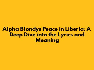 What's up, music lovers! Today, we're gonna dive deep into a track that's been resonating with people for a long time: "Peace in Liberia" by the legendary Alpha Blondy. This song ain't just a catchy tune; it's a powerful message packed with emotion and a whole lot of history. So grab your headphones, get comfy, and let's unpack what makes this song so darn special, focusing specifically on the meaning behind the lyrics. If you've ever heard this banger and wondered what Alpha Blondy was trying to tell us, you're in the right place, guys.