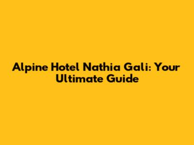 Alpine Hotel Nathia Gali: Your Ultimate Guide