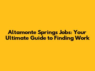 Altamonte Springs Jobs: Your Guide To Finding Work