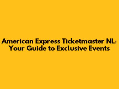American Express Ticketmaster NL: Your Guide To Exclusive Events