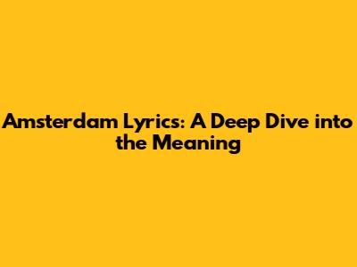 Amsterdam Lyrics: A Deep Dive Into The Meaning