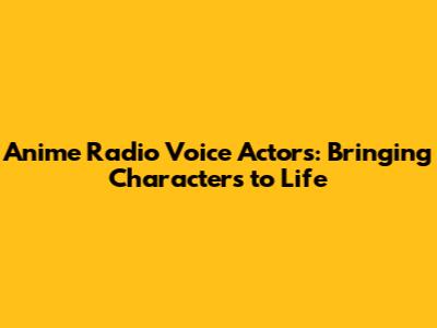Anime Radio Voice Actors: Bringing Characters To Life