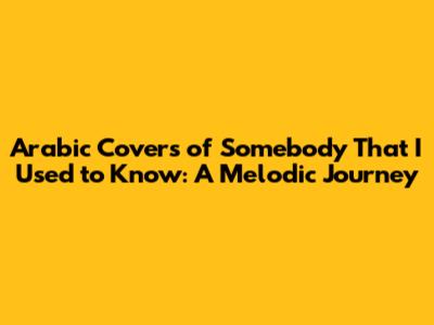 Hey everyone, let's dive into the amazing world of music, specifically the Arabic versions of Gotye's smash hit, 'Somebody That I Used to Know'. This song, originally featuring Kimbra, took the world by storm, and it's no surprise that its universal themes of heartbreak, nostalgia, and the complexities of relationships resonated with audiences across cultures. This popularity has, in turn, inspired countless covers and renditions, with Arabic artists putting their unique spin on the track. We're going to check out some of these incredible Arabic versions, explore what makes them so captivating, and maybe even get a glimpse into how different cultures interpret and express the emotions within the song. Buckle up, music lovers, because we're about to embark on a melodic journey!