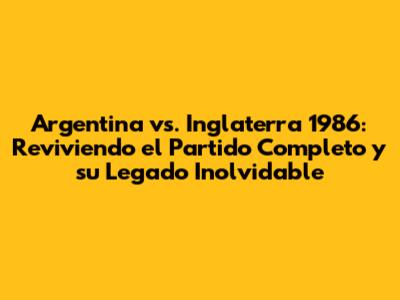 Argentina Vs. Inglaterra 1986: El Partido Completo Y Su Impacto