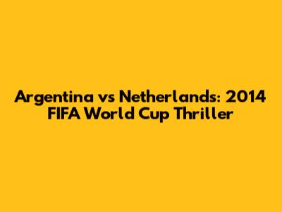 Argentina Vs Netherlands: 2014 FIFA World Cup Thriller