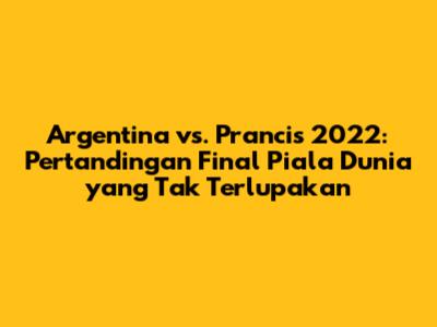 Argentina vs. Prancis 2022 adalah pertandingan final Piala Dunia yang tak terlupakan. Pertandingan ini menyajikan drama, emosi, dan aksi lapangan yang luar biasa. Lionel Messi, Kylian Mbappé, dan Emiliano Martínez menjadi pemain kunci dalam pertandingan ini. Kemenangan Argentina memiliki dampak besar bagi sepak bola Argentina dan dunia. Pertandingan ini akan terus dikenang sebagai salah satu momen terbaik dalam sejarah sepak bola.