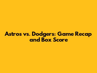 Astros Vs. Dodgers: Game Recap And Box Score