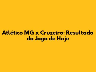 Atlético MG Vs Cruzeiro: Resultado Do Jogo De Hoje