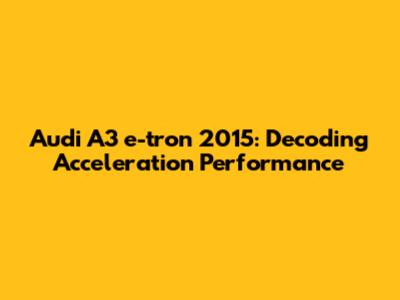 Decoding the Factors Influencing Audi A3 e-tron 2015 Acceleration