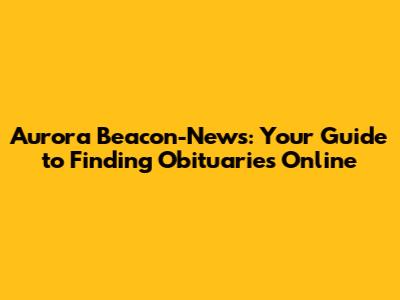 - Check Neighboring Newspapers: If you can't find the obituary in the Aurora Beacon-News, try checking neighboring newspapers. The person might have had connections to other communities in the area. Accessing obituaries through the Aurora Beacon-News online digital edition can be straightforward with the right approach. By utilizing their website, alternative obituary platforms, and refining your search terms, you can enhance your chances of finding the information you seek.