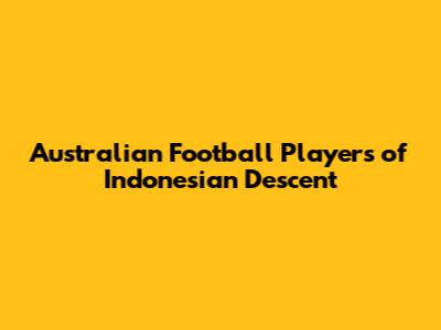 Australian Football Players Of Indonesian Descent