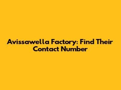 Avissawella Factory: Find Their Contact Number