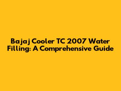 Bajaj Cooler TC 2007: Easy Water Filling Guide & Troubleshooting