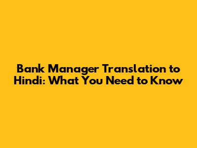 Bank Manager Translation To Hindi: What You Need To Know