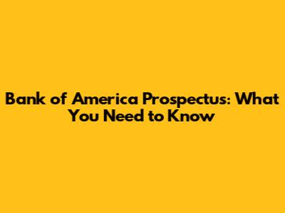 Bank Of America Prospectus: What You Need To Know