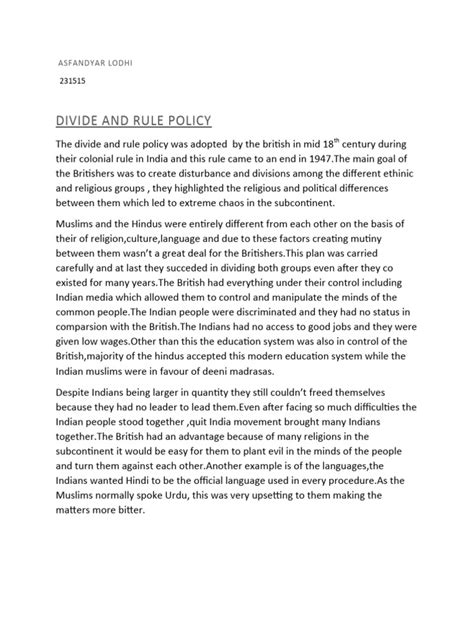 The Devastating Fallout: Long-Term Consequences of Divide and Rule