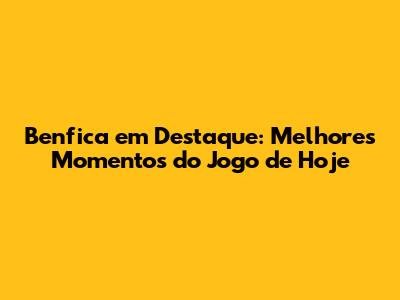 Benfica Em Destaque: Melhores Momentos Do Jogo De Hoje