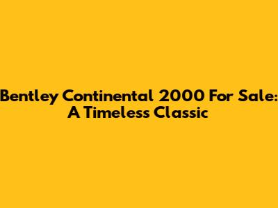 The Bentley Continental 2000 is more than just a car; it's a statement. Finding one for sale requires patience, research, and a keen eye for detail. By understanding the allure of this classic vehicle, knowing where to look, and ensuring a sound investment, you can drive away in a piece of automotive history that will provide years of enjoyment. Happy hunting, guys, and may your Bentley dreams come true!