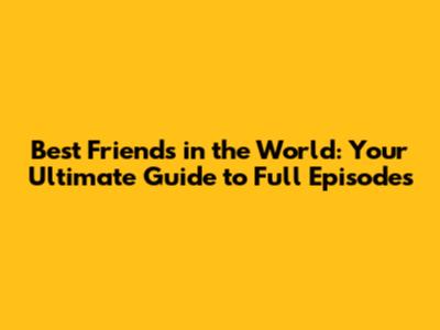 Where to Watch "Best Friends in the World" Full Episodes: Your Go-To Guide