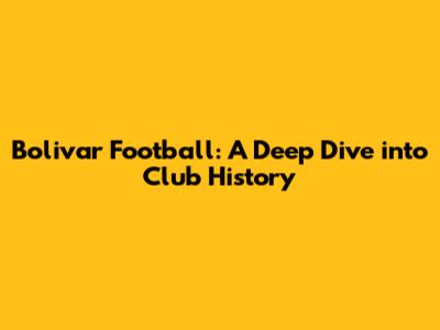 Bolivar Football: A Deep Dive Into Club History