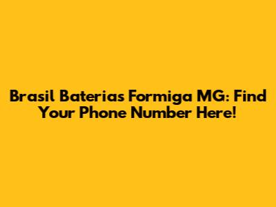 Brasil Baterias Formiga MG: Find Your Phone Number Here!