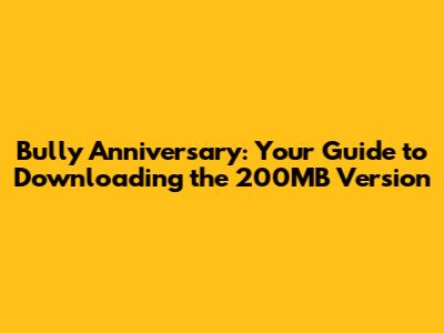 Bully Anniversary: Download Guide (200MB)