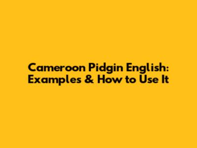 Cameroon Pidgin English: Examples & How To Use It