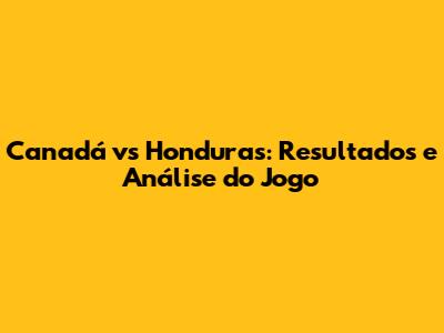 Canadá Vs Honduras: Resultados E Análise Do Jogo