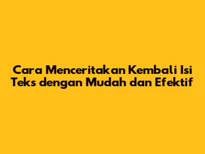 Cara Menceritakan Kembali Isi Teks Dengan Mudah Dan Efektif