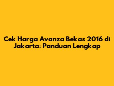 Cek Harga Avanza Bekas 2016 Di Jakarta: Panduan Lengkap