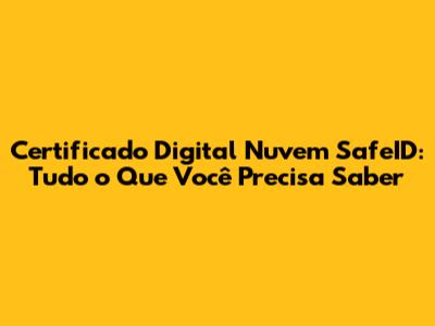 Certificado Digital Nuvem SafeID: Guia Completo E Prático