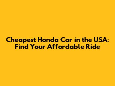 Cheapest Honda Car In The USA: Find Your Affordable Ride