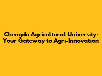 Chengdu Agricultural University: Your Gateway To Agri-Innovation