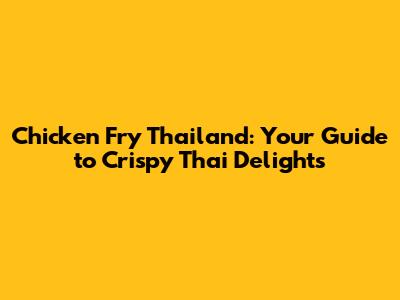 Chicken Fry Thailand: Your Guide To Crispy Thai Delights
